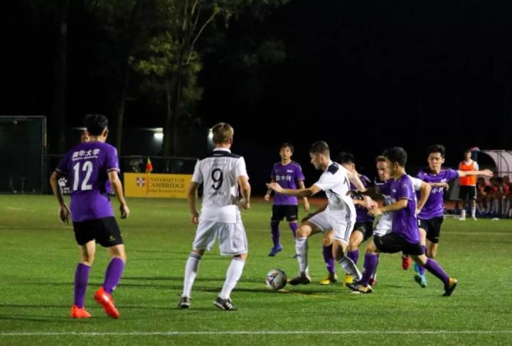 北京时间7月13日晚上8:00,2019世界名校足球赛的一场焦点大战,D组第一轮小组赛在华南理工大学北区足球场一触即发。清华大学与来自德国的图宾根大学相遇。上一届的比赛里双方均取得了傲人的战绩。本场比赛清华大学身穿紫色上衣黑色短裤,图宾根大学身穿一身白色战袍。上半场双方均无建树,下半场图宾根大学31号Christoph Hollnberger梅开二度,清华大学5号刘明辉打入一记点球。最终清华大学1-2图宾根大学,卫冕冠军图宾根大学首战告捷。