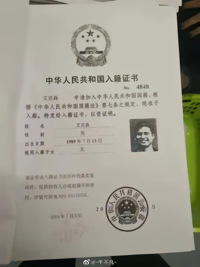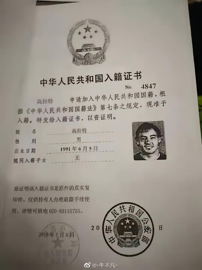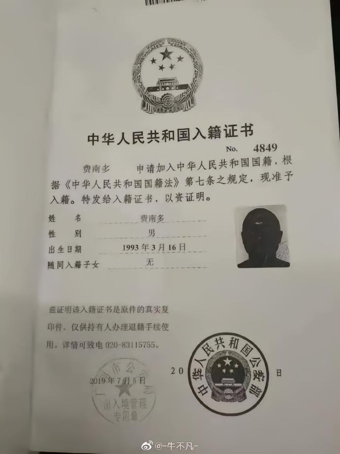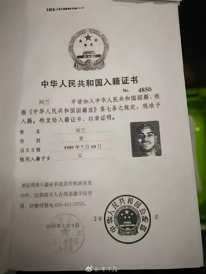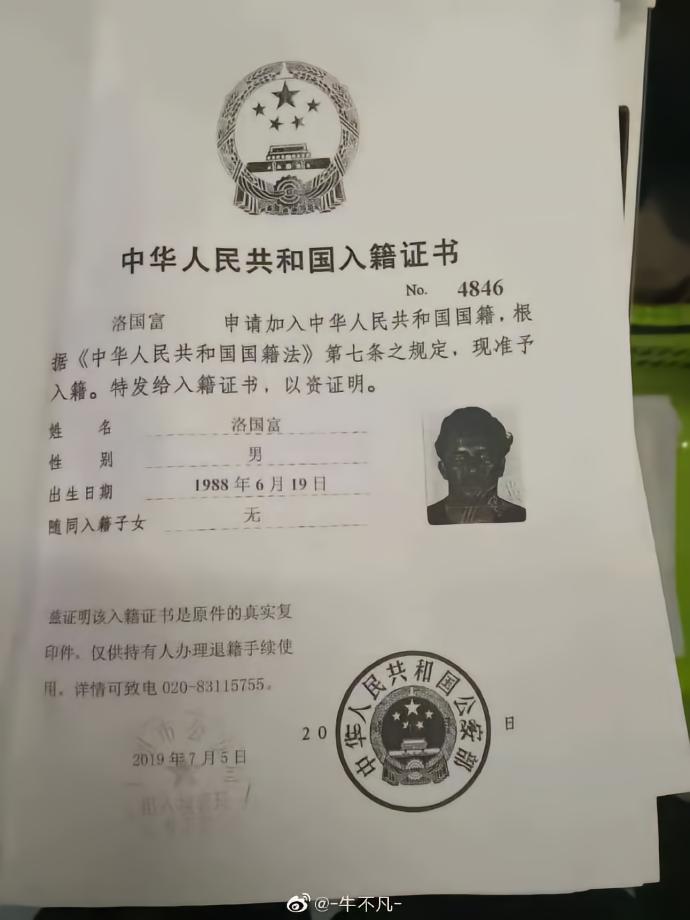 网曝多名归化球员入籍证书:野牛改名洛国富;原微博现已删除