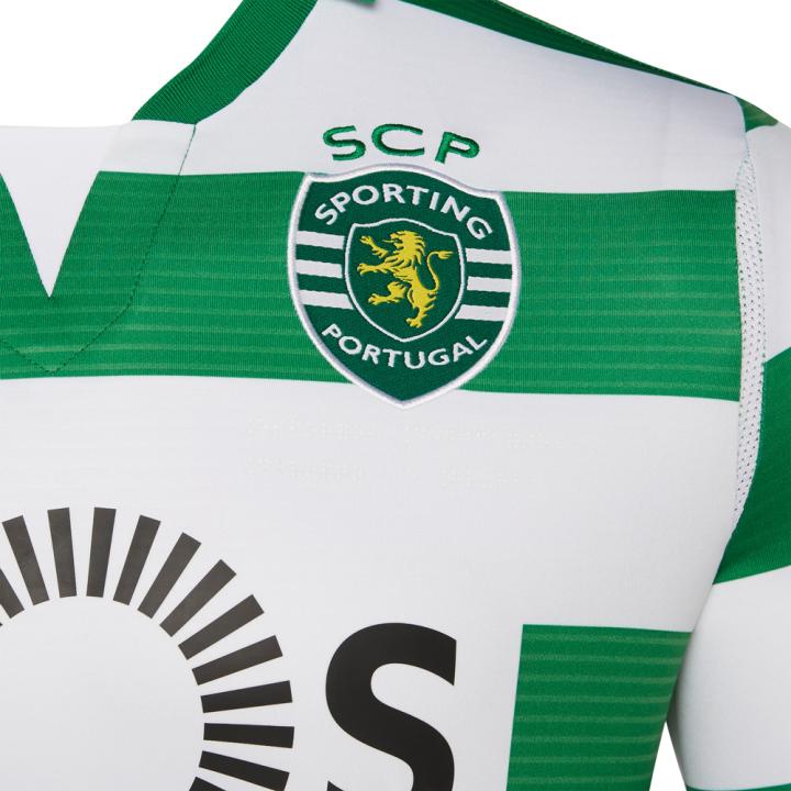 葡萄牙体育2019/20赛季主场球衣延续绿白横纹衫这一已经成为俱乐部经典形象的设计,拥有复古风格的绿色翻领让这件新球衣更具经典韵味。背后衣领下方加入罗马数字“MCMVI”(1906)暗纹,这是俱乐部更名为葡萄牙体育的年份。