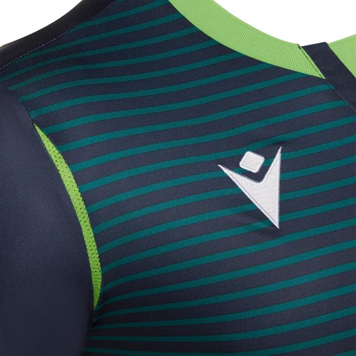 新赛季客场球衣则采用两种不同绿色各半的大胆设计,并加入微妙绿色细纹让球衣更具动感,单色俱乐部徽章则充满简约风范。亮眼的浅绿色细节被应用于衣领与袖等部位,让新球衣看起来更具创新意味。与主场球衣一样,客场球衣背后衣领下方同样加入罗马数字“MCMVI”(1906)的暗纹。