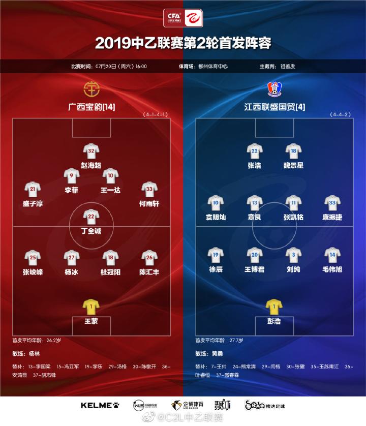 7月20日16:00,柳州体育中心,中乙联赛第二轮的补赛,广西宝韵主场迎战江西联盛国贸。6月23日,江西联盛国贸凭借魏景星的头球破门,曾经在主场1:0击败过广西宝韵。江西联盛取得两连胜排名南区第五力争闯入升级区,广西宝韵主场三连胜挑落领头羊苏州东吴,两支球队士气正旺都要吃掉对方,这注定是一场争夺激烈的比赛。