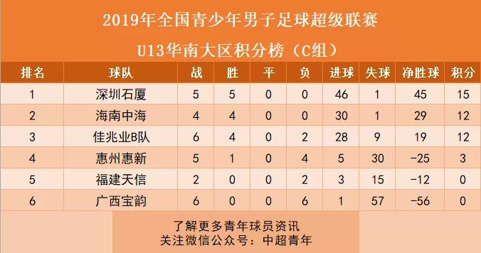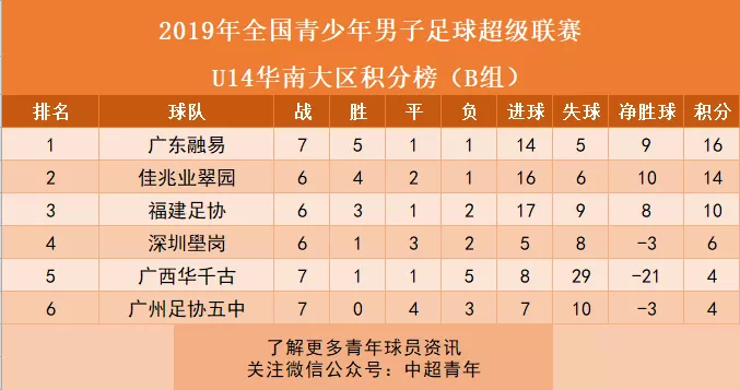 U13青超联赛C组,广西宝韵6连败小组垫底,进1球失57球。U14青超联赛B组,广西华千古1胜1平1平5负,进8球失29球,排名小组倒数第二。在职业足球的梯队建设方面,广西足球还是小学生。