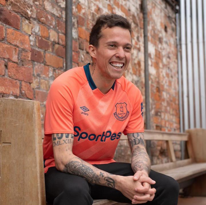 ENJOYZ足球umbro与英格兰埃弗顿足球俱乐部联手发布球队新赛季客场球衣。卢卡斯·迪尼、沃尔科特和伯纳德在利物浦波罗的三角区(Baltic Triangle)的多功能艺术音乐园区展示了新球衣。