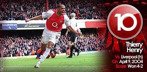 1.亨利(2003-04赛季英超联赛,阿森纳vs利物浦)