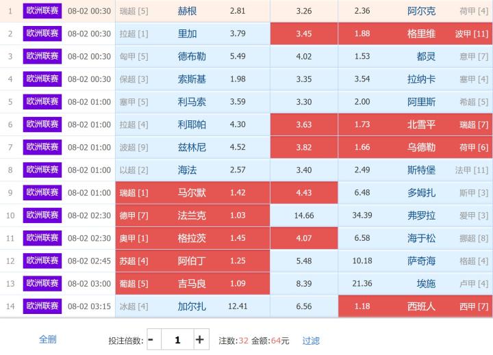 本期任九赛事均为欧联杯比赛,停售时间为8月1日21点45,所有比赛均在今晚结束,精选四胆五双方案供广大彩民参考,投注有风险。上期是我第一次在我懂推荐任九,128元三胆六双的方案赢得开门红,奖金为676元,回报率超5倍,本期继续努力,希望再给大家带来红单。