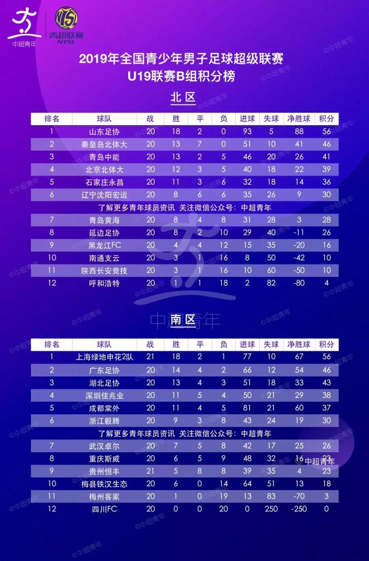 青超U19联赛B组北区第20轮完整比分: