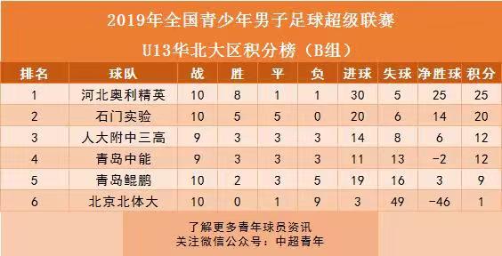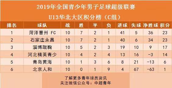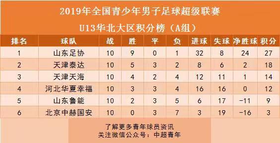 六、青超联赛华北大区:山东足协领跑U13、U17联赛。
