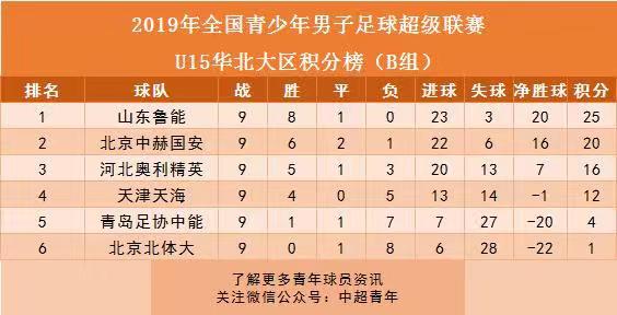 五、青超U19联赛B组北区:山东足协20轮不败。