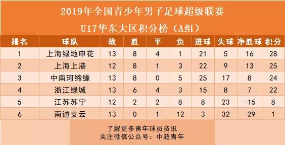 U17联赛A组积分榜: