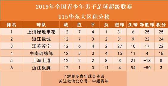 U15联赛积分榜: