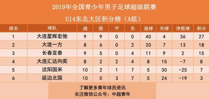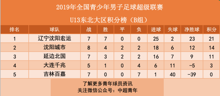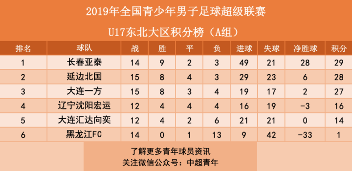 八、青超联赛东北大区:亚泰U17领跑积分榜。