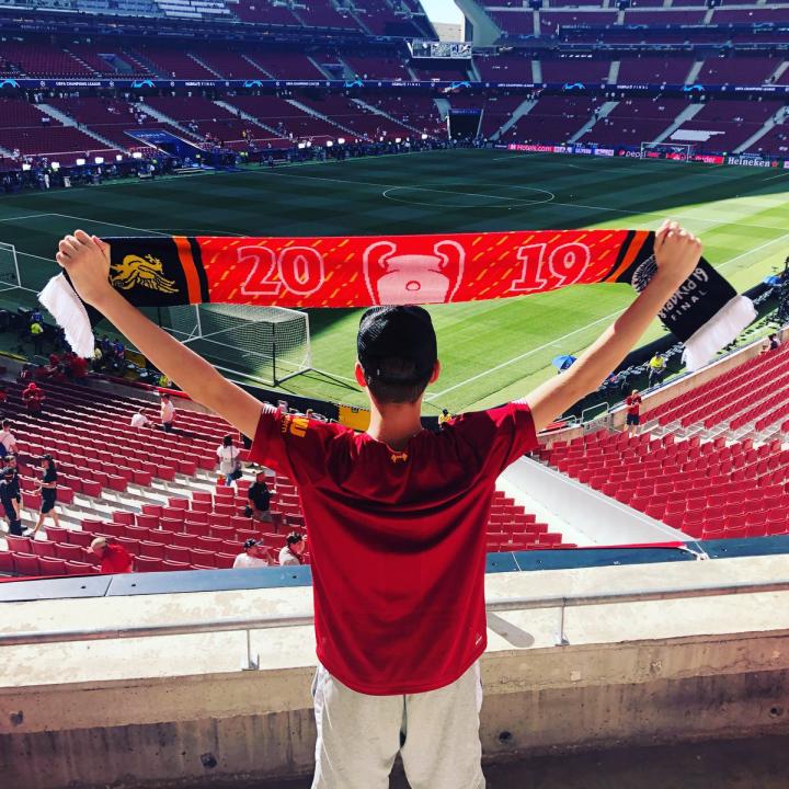 (图)2019年欧冠决赛前,F2Tekkz为他从小支持的利物浦加油