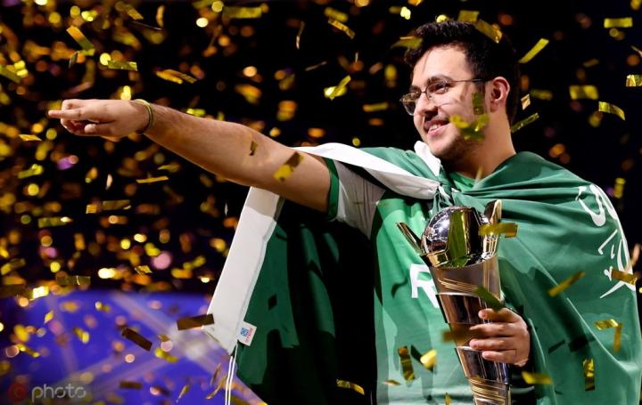 (图)沙特玩家阿尔多萨里在2018年《FIFA》电竞世界杯上夺冠
