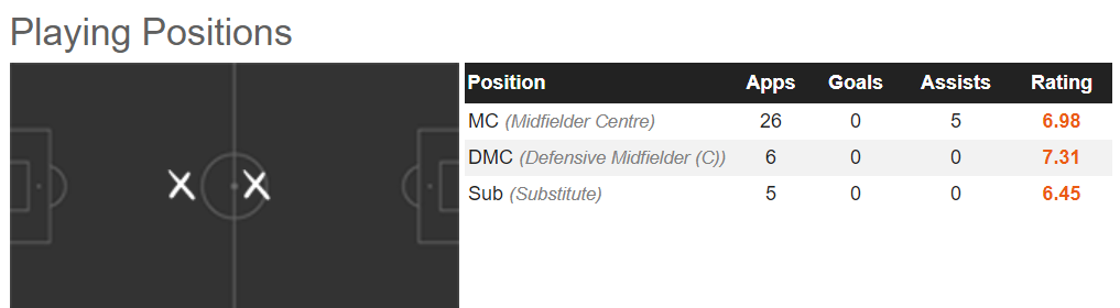 本赛季本纳赛尔的位置发生了一些改变,他被放在了后腰位置,成为了一位后置的组织核心,也承担了更多的防守任务,他是全队的核心,是恩波利和阿尔及利亚队的皮尔洛。
