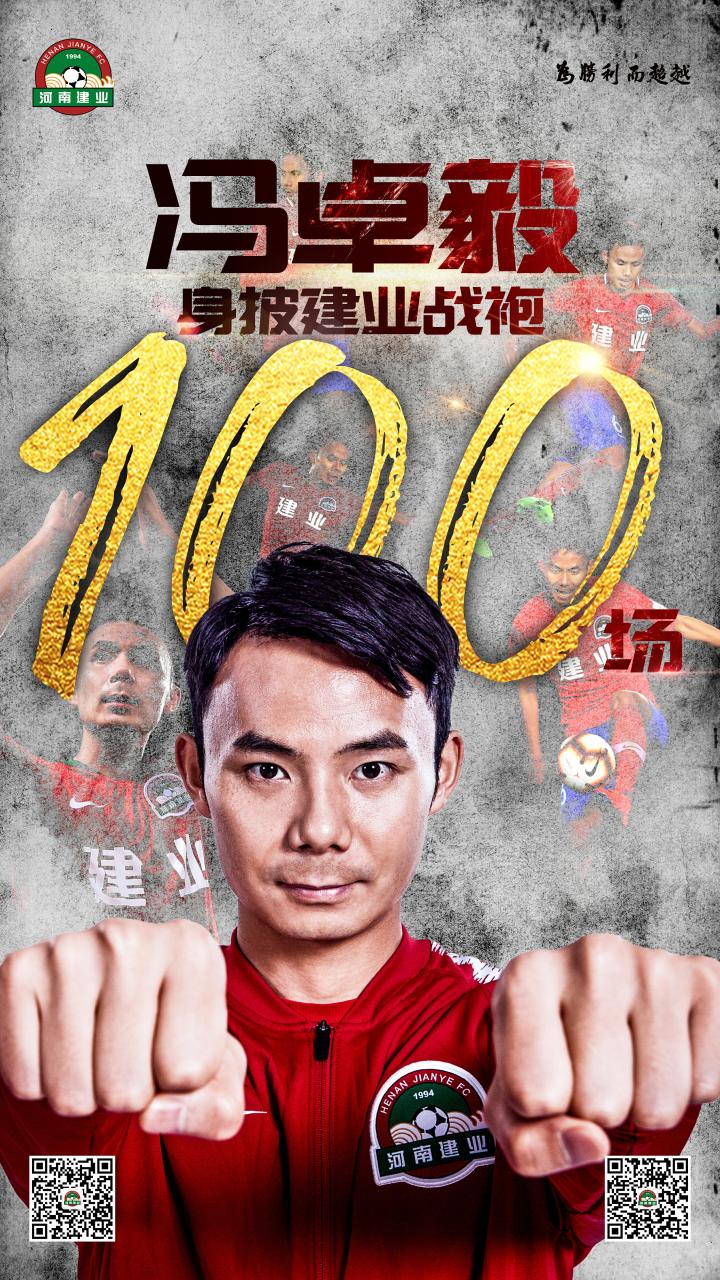 河南建业在与天津泰达的比赛时,球员冯卓毅在个人的足球生涯上完成了他身披河南建业球衣的第100场比赛,这也是他足球生涯新的里程碑!