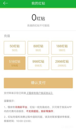3、红钻充值和消费过程中若遇到的问题,请将您的问题及懂球帝ID发送到zc@dongqiudi.com,我们将在七个工作日内为您解答;