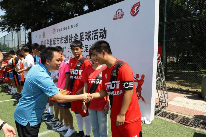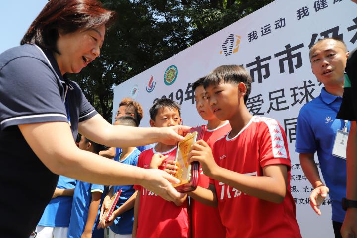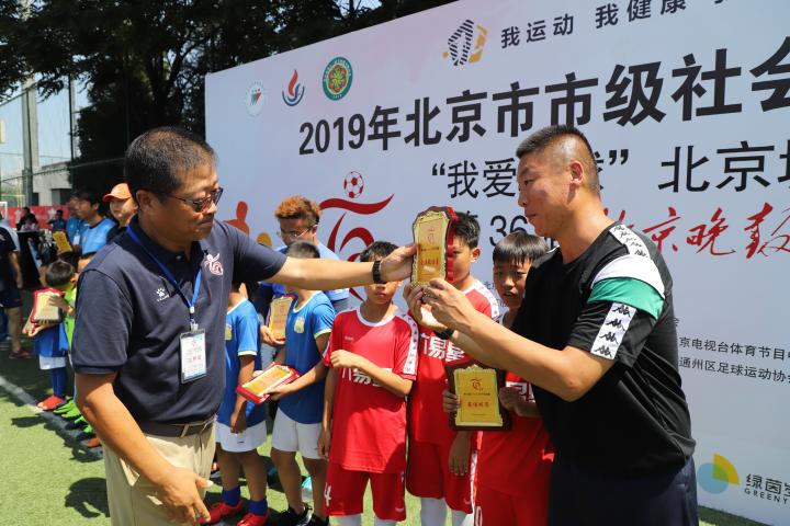 “我们是冠军!”,随着孩子们爆发出胜利的欢呼声,15日上午,2019年北京市市级社会足球活动“我爱足球”北京城市足球联赛第36届百队杯五人制足球赛在北京奥林匹克体育中心圆满落幕。