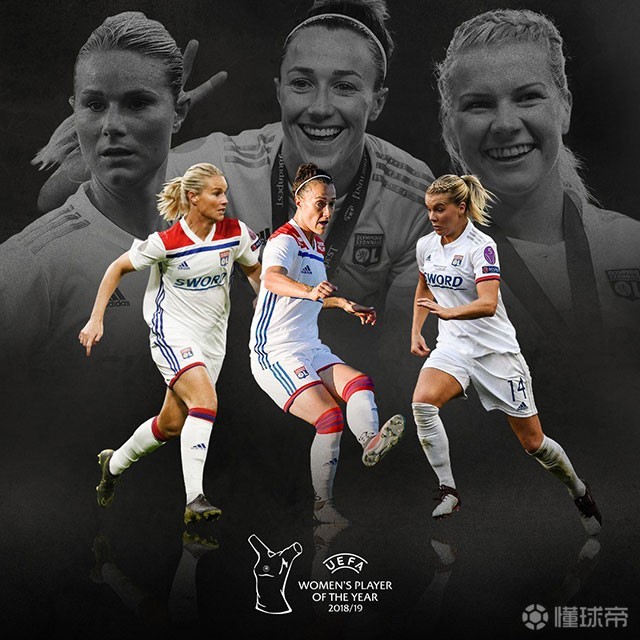 随欧足联男足年度最佳球员候选人一起公布的,还有女足的三名候选人,3人均来自上赛季女足欧冠冠军得主里昂。