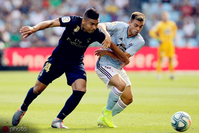(图)马塞洛的防区成为了塞尔塔的兵锋所指,补位的卡塞米罗速度和身体柔韧性比较一般,这让他在面对边路攻击手时比较吃力。