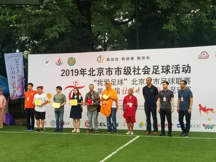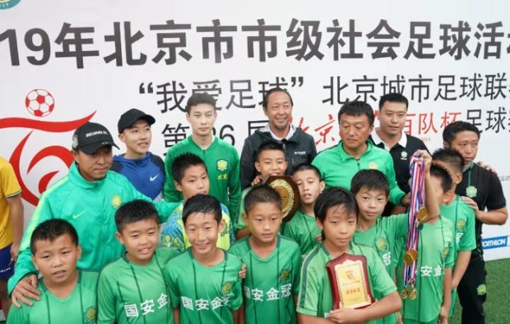 8月20日中午,2019年北京市市级足球活动之“我爱足球”北京城市足球联赛——第36届北京晚报百队杯足球八人制赛在国家奥林匹克体育中心落下大幕。“踢完五人制,再踢八人制”,八人制各组别名次今天上午也分别决出。组委会更是邀请到众多嘉宾、足球届老前辈金志扬、商瑞华、郭瑞龙等到场,还邀请到了中赫国安球员巴顿、侯森等球员到现场为获奖球队和获奖小球员颁奖。