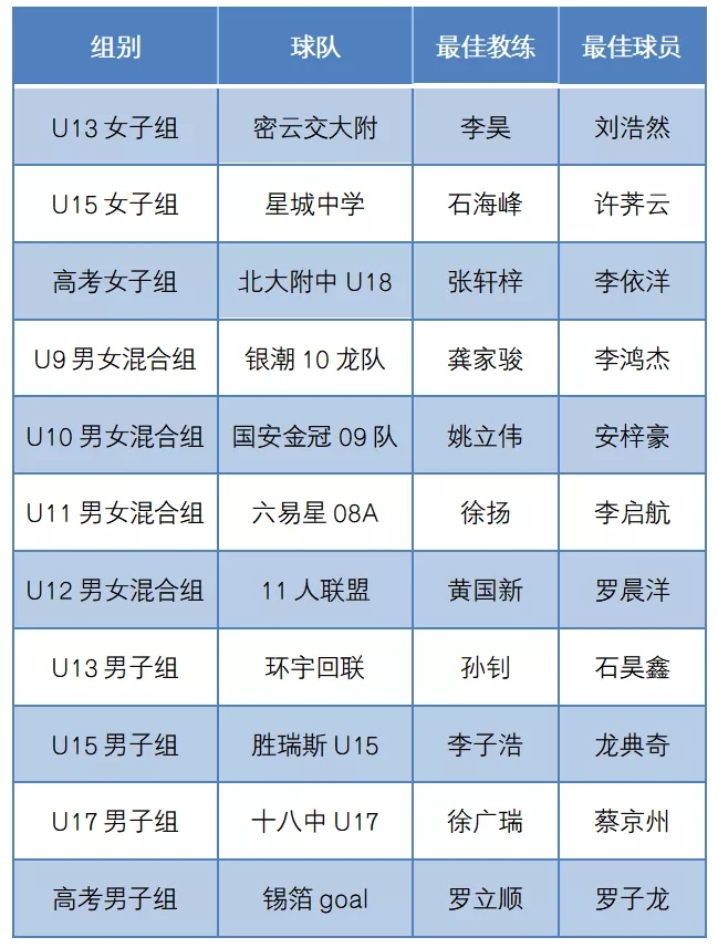 今年的百队杯五人制比赛按照年龄设置了6至12岁共7个男女混合组别,以及男子和女子的U13、U15、U17和高考组8个组别。八人制比赛则设置了9至12岁4个男女混合组别,还有男子和女子的U13、U15、U17和高考组8个组别。1412场比赛后,五人制组别率先在8月15日结束,产生了15支冠军球队。8月20日,今年的1966场百队杯决赛全部结束,产生了12个组别的八人制冠军。百队杯少年们的笑容再一次绽放在国家奥林匹克体育中心的球场上。