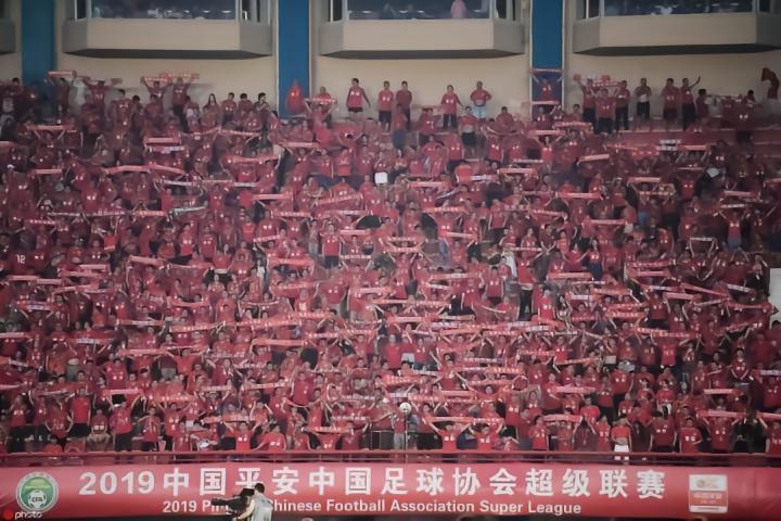 ● 2019年7月21日,河南建业vs武汉卓尔。看台建业球迷“围巾墙”