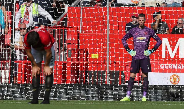 主场作战的曼联,其首发阵容与上一场对阵狼队时一样。4-2-3-1的阵型中,德赫亚依然是稳稳的首发,四人后防线上,瑞典足球先生林德洛夫与英格兰国脚哈利·马奎尔搭档中后卫组合,“小胖子”卢克·肖担任首发左后卫,本场比赛面对老东家的万比萨卡担任右后卫位置。法国国脚博格巴与苏格兰人麦克托米奈依然搭档双防守中场,本赛季三轮联赛,两人均踢满全场,不难看出索尔斯克亚本赛季有意要将他们打造成曼联稳定的中场二人组合。曼联前场依然是进攻四人组合,本赛季改穿9号球衣的马夏尔担任正前锋位置,丹尼尔·詹姆斯与拉什福德两名喜欢带球突破的速度型球员分别担任右边锋与左边锋位置,林加德在上一场发挥欠佳的前提下,本场让人意外地再次获得首发机会,担任进攻线上的自由人,其功能与10号位相近。