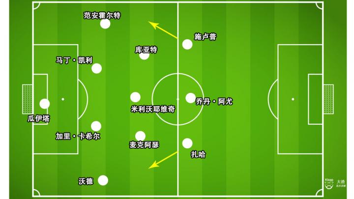 为此,曼联可以利用频繁地快速换边,通过动摇水晶宫的防守重心以将防线牵扯松散。