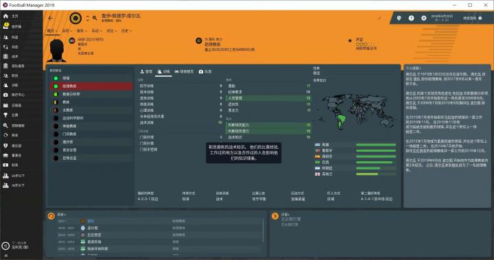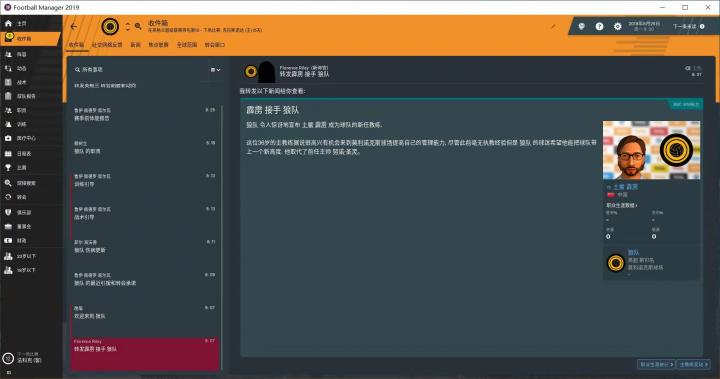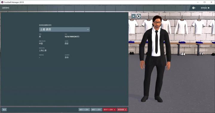 这次的游戏版本是FM2019。上图就是我——土鳖霹雳,在游戏中呢一般多被直接称为土鳖。我比较喜欢穿西服的教练,显得很有智慧,其实主要还是帅。