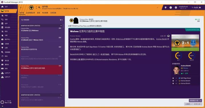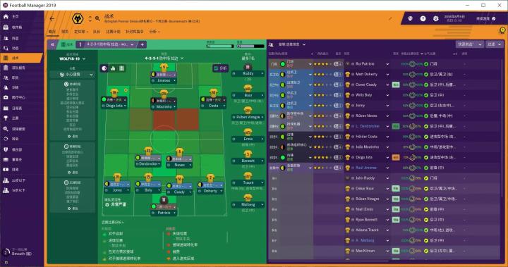 我第一个执教球队是英超——狼队。为什么选择狼队呢,主要是因为球队处在上升期,成绩稳步提高,老板能投入资金,今年还有欧联踢。我一般不喜欢玩豪门球队,多会选择一些中小球队来指教,自觉的还是很有乐趣的。