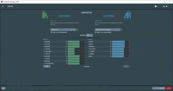 至于执教风格,我的理念是整体强才是真的强,攻强守弱、守弱攻强都是不行滴。我比较喜欢攻守平衡的打法。所以关于执教风格加点方面,系统默认的就很好,很平衡,我就直接用了,没有更改。