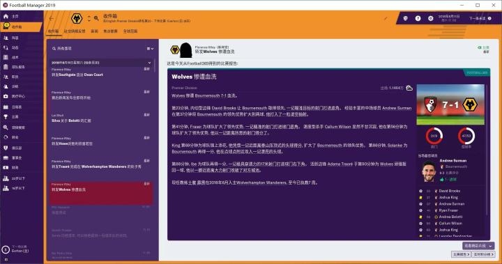 期待已久的英超终于开始了,观众朋友们肯定和我一样激动。第一轮对阵伯恩茅斯,我本来预计怎么也是个1球小胜。结果却万万出乎我的预料。。。1比7惨败啊。直到90分钟我才打进了挽回颜面的一球。这场比赛彻底让我认识到,狼队,还是一个很弱很弱很弱的球队。另外,中场红色区域的的空挡还真就是个大空挡,对手可以在这个区域轻松的拿球、控球、组织进攻。