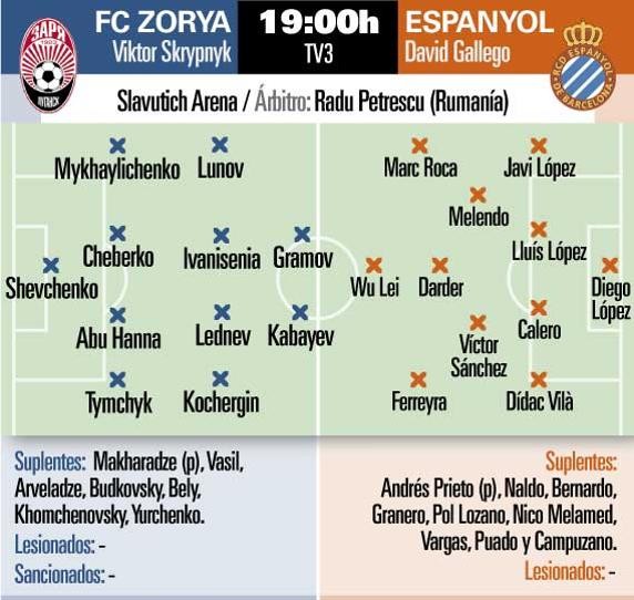 本场比赛的重要性不言而喻,以至于主帅加耶戈带了28名球员前往乌克兰,其中包括了大卫-洛佩兹和皮亚蒂,但新引进的阿根廷前锋卡莱里并不能出战,因为在双方首回合赛前并未给他进行注册。世体预测,尽管手握两球领先,加耶戈也不会进行轮换,他会派出最好的十一名队员,以避免痛失好局。