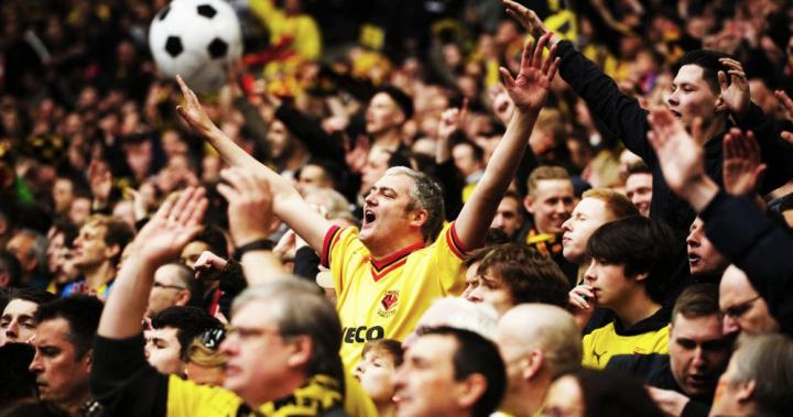 早年间我们的球衣是以蓝色为主的,在上世纪50年代,我们更换为以金黄色为主的主场球衣,“大黄蜂”的外号也由此而来,后来我们的队徽形象也变成了黄蜂,不过1978年,队徽被换成了代表城市的雄赤鹿,也就是我们现在队徽上的鹿啦。不过“大黄蜂”的外号沿用至今(可不要把我们和德甲的“大黄蜂”弄混咯)!