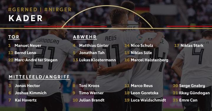 德国队公布球员号码:新晋国脚瓦尔德施密特19号