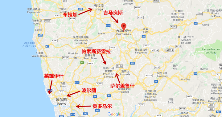 看一眼下面的波尔图周边地图,是不是到处都是眼熟的名字?