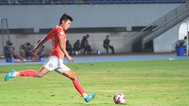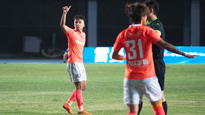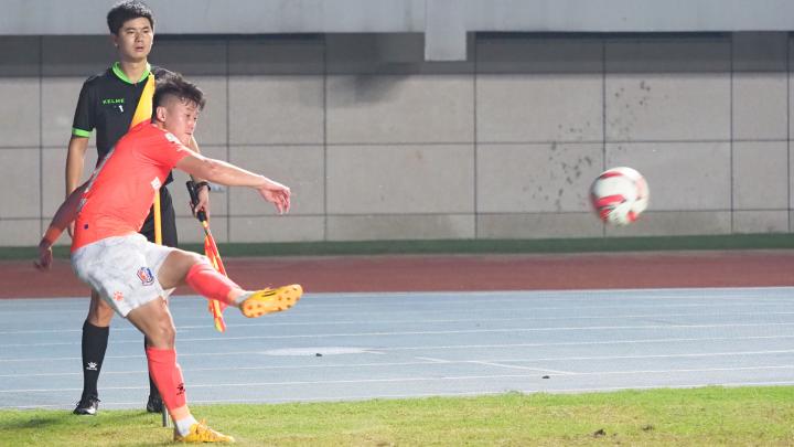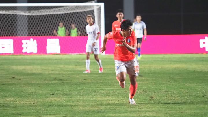 比赛第10分钟,联盛获得角球机会,徐辰主罚角球助攻张凯铭破门得分,1:0;