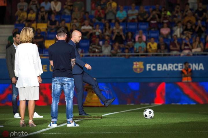 北京时间9月2日凌晨,约翰-克鲁伊夫球场迎来正式比赛首秀,巴萨B队以2-2的比分战平塔拉戈纳,打入首球的昆卡赛后被授予了纪念牌匾。