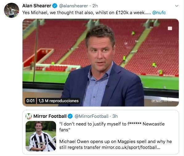 最近这次争吵是因为欧文出新书,自传中讲述了不少争议事件,其中包括后悔当年加盟纽卡斯尔。欧文还在电视专访中表示,他非常憎恨自己职业生涯的最后几年,等不及想退役了。