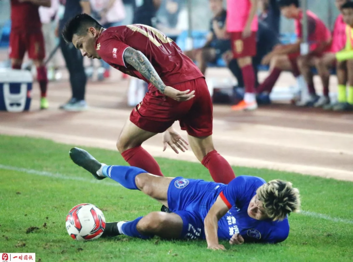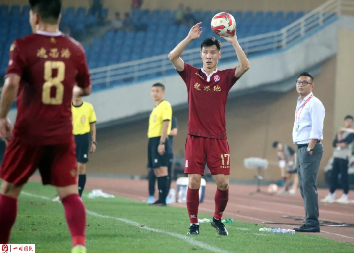 比赛第51分钟,10号成源右路带球在禁区内摔倒,裁判示意门球。