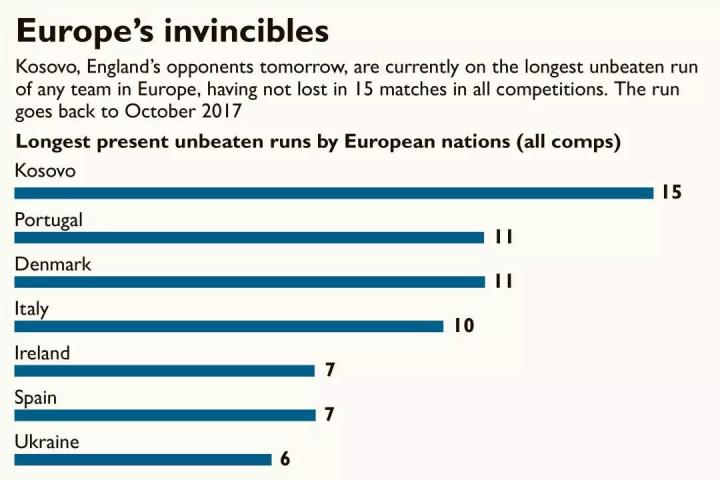 法国?荷兰?英格兰?西班牙?都不是,是科索沃。自2017年10月以来,科索沃已经连续15场比赛不败了,在2020年欧洲杯预选赛上,他们目前2胜2平。