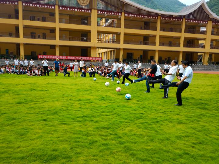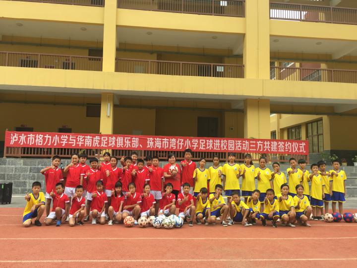 在梅县铁汉忠实支持者谢春平女士的搭桥牵线下,根据云南怒江泸水市格力小学实际情况与需求,我俱乐部携手珠海市香洲区湾仔小学,联合开展足球进校园的帮扶工作。