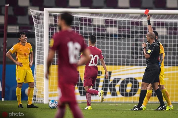 末战卡塔尔,已经只剩理论上出线希望的国足背水一战。肖智的扳平破门让客场作战的国足将士士气大振,但第80分钟,阿费夫形成单刀之势杀向国足禁区,最后一个回追的郑智只能将其放倒,任意球+红牌。