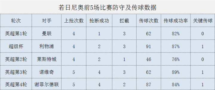 在防守方面,两套体系在数据上似乎难分高下,丢球数都不少。不过,站在若日尼奥的角度来看,两种体系的区别还是很大的。