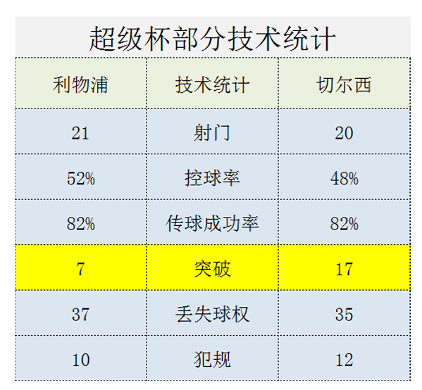 数据上,超级杯对战双方基本是“平分秋色”,之所以用“基本”一词,是因为双方的突破次数相差太大,7-17在技术统计中显得十分突兀。切尔西多出来的10次突破,有9次出现在坎特身上,这出乎很多人的意料,包括渣叔和利物浦。当红军对若日尼奥和科瓦契奇展开重点防守时,却被坎特从另一侧杀了个措手不及,外围防线承受了极大的压力。