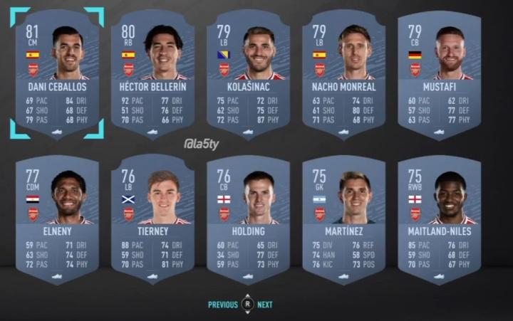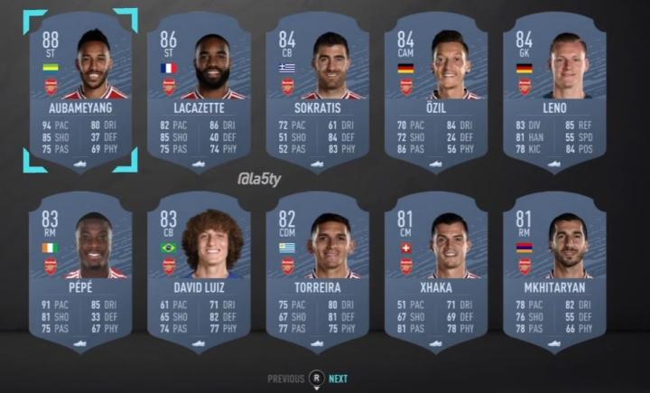 阿森纳球员FIFA20能力值:奥巴梅扬第一,帕帕厄齐尔并列第三