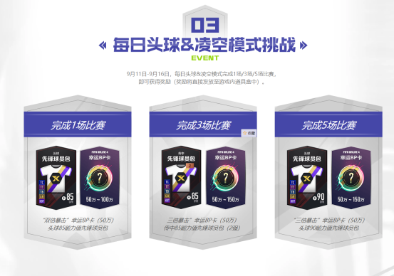 在上周FIFA ONLINE 4的版本更新中,推出了全新的娱乐模式——头球&凌空射门模式。游戏规则是在此模式下,只有在空中的进球才被算作有效进球,空中进球即头球和凌空射门两种方式,任意球和点球得分和常规一样,也会被算作得分。