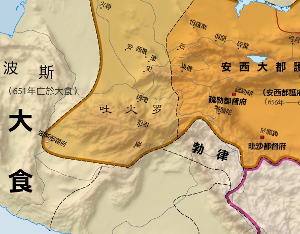 651年,波斯萨珊王朝灭亡。波斯王子卑路斯三世逃亡到唐朝,请求军事协助,帮助他对抗阿拉伯人。唐朝成立了“波斯都督府”,封卑路斯为都督。