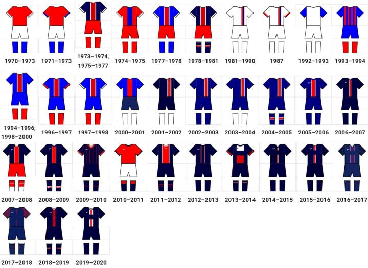 此后几十年,巴黎圣日耳曼的主场球衣基本都用蓝红作为主色调,直到1981年,时任俱乐部主席弗朗西斯·博雷利决定将客场的白色球衣作为主场使用,蓝红设计则降级为客场配色。