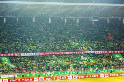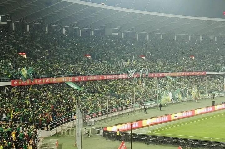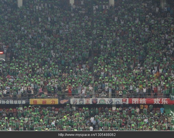 在比赛现场,如果谁手里没有绿纸,还真的会有球迷主动给他一张,当然拿到绿纸的球迷也是谢不离口。我也是提前买了几张,当广播宣布裁判员、运动员入场时,只见全场的球迷都在做着同一个动作,就是举起手中的绿纸。据我目测,得有两万多国安球迷都在举着绿纸,虽然绿纸的颜色还有一点差别,有的是浅绿,有的是深绿,但这丝毫不影响我们对国安的热爱。